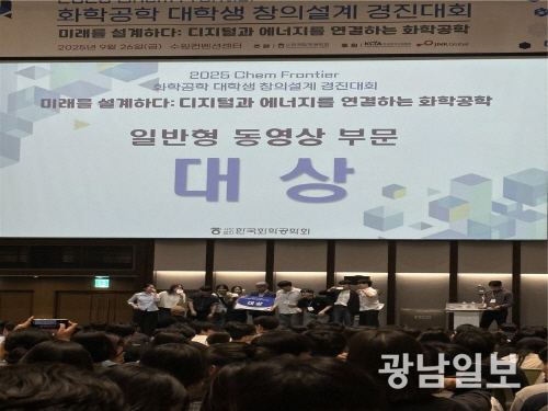 16일 전남대학교에 따르면 화학공학부 학생들이 한국화학공학회가 주최한 ‘2025 Chem Frontier 화학공학 대학생 창의설계 경진대회’에서 동영상 부문 대상을 수상했다.