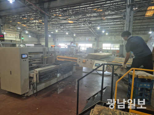 전남농협 포장재 가공사업소에서 골판지 상자가 생산되고 있다. |