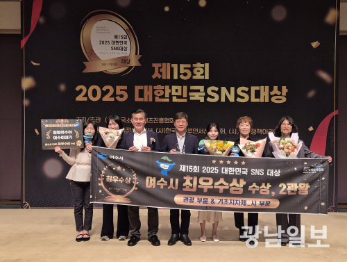 여수시는 16일 서울 한국프레센터 국제회의장에서 열린 ‘제15회 2025 대한민국 SNS대상’에서 기초지자체 시 부문과 관광 부문 2개 분야 최우수상을 수상했다. |