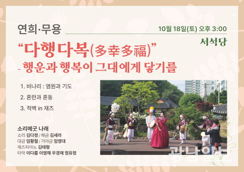 무대는 국악 전공 청년 예술인들로 구성된 소리메굿 나래가 준비한다. 전통의 뿌리를 지키면서 현대적 감각으로 무대를 재해석하는 이들은 이번 무대를 통해 국악이 단순히 ‘보존의 예술’이 아니라, 현재의 삶과 호흡하는 ‘살아있는 예술’이라는 것을 보여줄 전망이다.