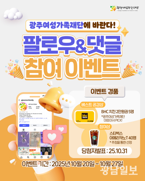 자세한 내용은 재단 홈페이지(www.gjwf.or.kr) 또는 인스타그램(@gjwomenfamily)을 통해 확인할 수 있다. 문의 062-670-0534~5.