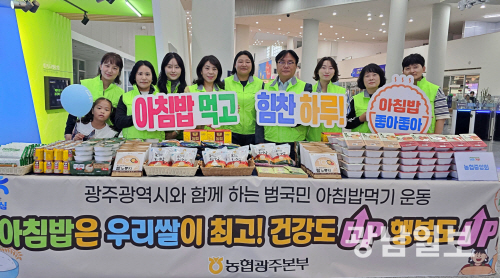 이날 캠페인에는 이현호 농협 광주본부장을 비롯해 농협 여직원 봉사단체인 가인회 회원 등 농협 직원 10여명이 참석했다. 참가자들은 박람회를 찾은 시민들에게 아침밥 먹기 홍보물을 배부하며 바쁜 현대인들에게 아침식사의 중요성을 알렸다.