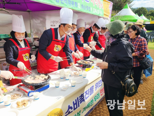 농협 전남본부는 한돈자조금관리위원회, 화순축협과 함께 최근 열린 ‘2025 화순 고인돌 가을꽃축제’ 현장에서 한돈 시식 및 판촉행사를 열고 우리 돼지고기의 우수한 맛과 품질을 널리 알렸다. |
