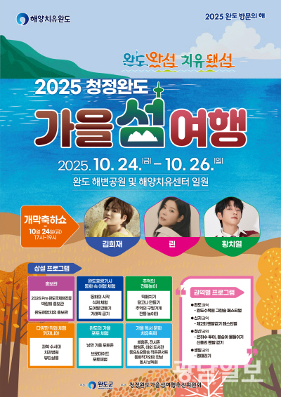 21일 완도군에 따르면 24~26일 3일간 완도 해변공원과 해양치유센터 일원에서 ‘2025 청정 완도 가을 섬 여행’ 행사를 개최한다.