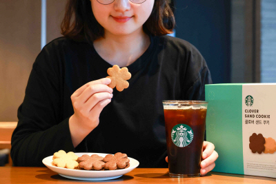 스타벅스가 수능 응원 상품으로 선보인 ‘클로버 샌드 쿠키’를 즐기는 모습. |