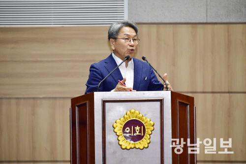 강기정 광주시장이 21일 광주시의회 본회의 시정질문에서 ‘군 공항 이전 후 부지 활용 방안’을 묻는 질문에 “AI와 빅테크 등 신성장 첨단산업을 중심으로 한 광주형 실리콘밸리를 조성하겠다”고 말했다. |