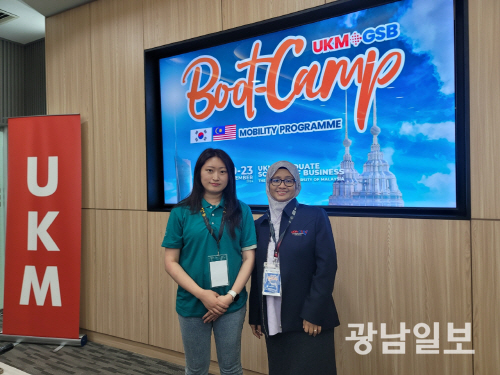 | 박지현 ㈜온디 대표(왼쪽)가 해외시장 진출을 위해 2024년 11월 말레이시아 케방산대학 세미나에 참석했다. |