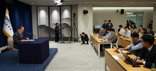 | 24일 용산 대통령실 브리핑룸에서 취재진이 위성락 국가안보실장의 이재명 대통령 아세안 순방 및 APEC 정상회의 일정 관련 브리핑을 취재하고 있다. 연합뉴스 |
