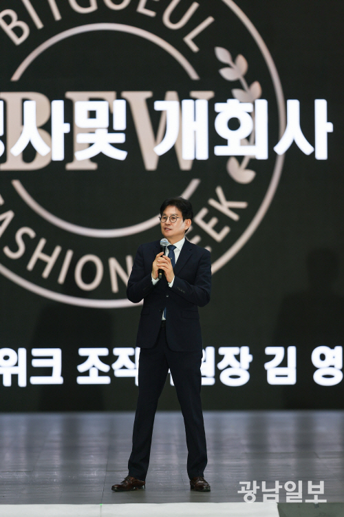 | 김영준 빛고을 패션위크 조직위원장이 개회사를 하고 있다. |