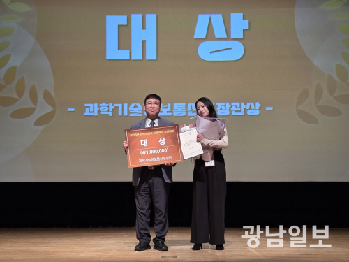 | 국립광주과학관 장유미 과학해설사가 과학기술정보통신부장관상(대상)을 수상 후 기념촬영을 하고 있다 |