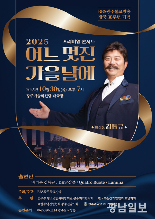 BBS광주불교방송은 오는 30일 오후 7시 광주예술의전당 대극장에서 개국 30주년 기념 프리미엄 콘서트 ‘어느 멋진 가을날에’를 연다.
