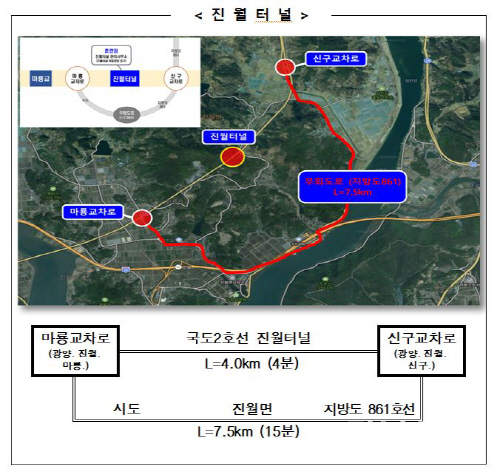 이 지역을 통과하는 차량은 진월면 마룡교차로에서 신구교차로까지 지방도 861호선(연장 7.5㎞)을 통해 우회해야 한다.