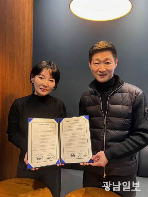 | 양숙희 곡성 농업회사법인 시향가㈜ 대표가 최근 미국 뉴욕 미슐랭 스타셰프인 심성철 셰프와 업무협약을 체결, 심 셰프가 운영하는 레스토랑에 생막걸리를 납품하기로 했다. |