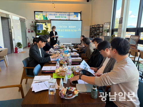 이번 워크숍은 구례스토어, 세포마켓, 구례주조장, 통합어울림센터, 그때그날기록관, 음악당 등 거점시설 간 이음 공간 연계와 시너지 창출 방안을 모색하기 위해 마련됐다.