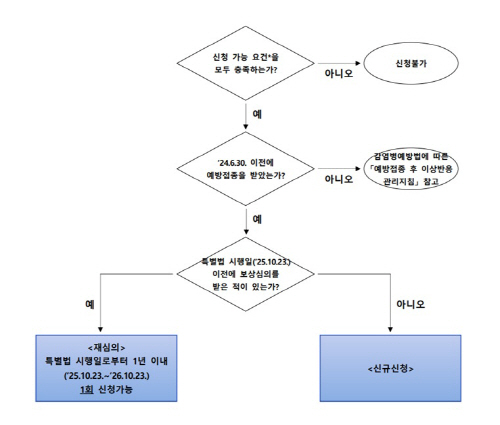 그동안 피해보상은 ‘감염병의 예방 및 관리에 관한 법률’에 따라 진행됐지만 이번 특별법 시행으로 ‘감염병예방법’으로 심의 완료된 기각 건에 대해서도 재심 기회 부여 등 별도의 법적 절차와 근거가 마련돼 공정성과 신속성이 더욱 강화됐다.