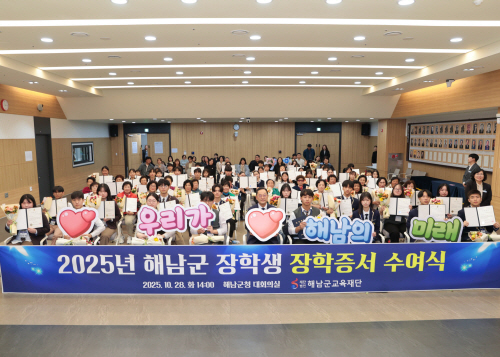 | 해남군교육재단은 최근 해남군청 대회의실에서 2025년 해남군 장학생 장학증서 수여식을 개최했다. |