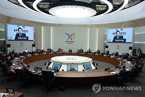 | 이재명 대통령이 31일 경주화백컨벤션센터(HICO)에서 열린 2025 아시아태평양경제협력체(APEC) 정상회의 제1세션에서 발언하고 있다.(연합) |