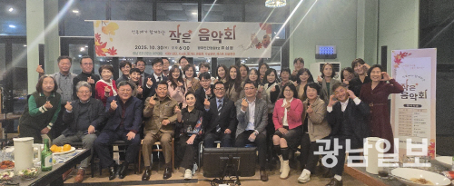 | 광남일보 글로벌아카데미 원우들은 30일 오후 6시 광주 광산구 수완지구 민간정원 ‘휴심정’에서 ‘12기·13기 선·후배와 함께하는 가을음악회’를 개최했다. |