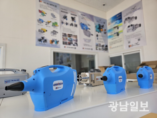 광주 광산구 진곡산단에 본사를 둔 이 회사는 유선형부터 무선형, 차량형까지 모든 방역장비를 자체 기술로 설계·제조하며 국산화율 100%를 실현했다.