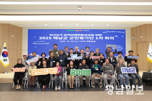 이와 관련해 해남군은 공약이행의 투명성과 책임성을 높이기 위해 최근 공약이행 군민평가단 회의를 개최했다. 군민평가단은 공약 추진 과정을 군민의 눈높이에서 점검하기 위한 참여기구로, 만 18세 이상 군민 중 성별·연령·지역을 고려한 무작위 추첨과 전화면접을 통해 선발된 30명으로 구성됐다.