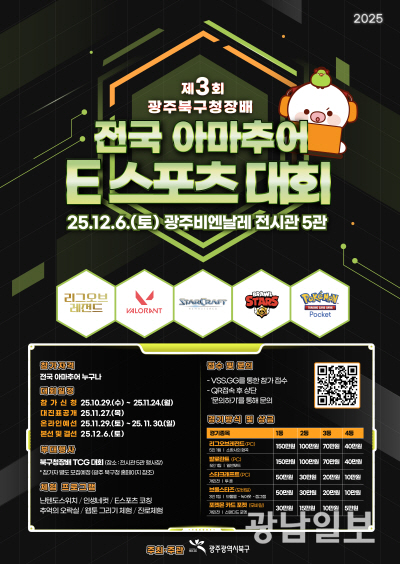 3일 북구에 따르면 오는 12월6일 광주비엔날레전시관에서 ‘제3회 광주 북구청장배 전국 아마추어 e스포츠 대회’가 열린다.