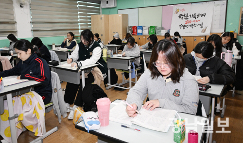 | 2026학년도 대학수학능력시험을 열흘 앞둔 3일 광주 남구 진월동 대성여고 3학년 학생들이 자율학습을 하고 있다. 최기남 기자 bluesky@gwangnam.co.kr |