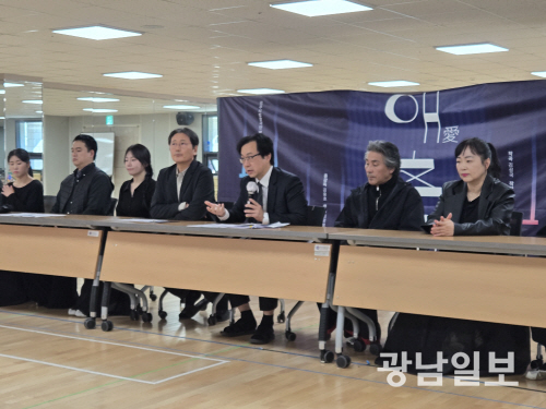 | 지난 달 28일 진행된 광주시립창극단 ‘愛(애)춘향’ 기자간담회에서 김용호 예술감독이 질의에 답하고 있다. |