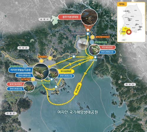 사업 대상지는 세계자연유산으로 등재된 순천만갯벌과 보성갯벌을 포함하는 광역 해역으로 세계유산 연계형 해양생태공원으로 조성된다.