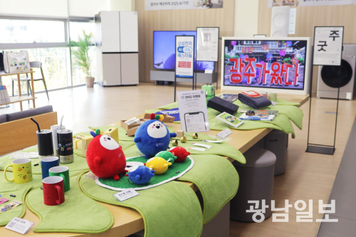 이번 전시는 지역 상품을 홍보하고 판로를 확대하기 위한 ‘메이드인 광주(Made in Gwangju)’ 전시회의 일부다. ‘무등산 스노볼’, ‘오매나 골프용품 세트’, ‘이팝나무 비누’ 등 광주 관광 기념품(굿즈)을 삼성전자 광주사업장에서 생산된 가전과 함께 전시한다.