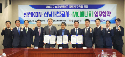 전남개발공사(사장 장충모)는 한전KDN(사장 박상형), MC에너지㈜(대표 정경오)와 함께 ‘영암 삼포지구 신재생에너지 생태계 구축을 위한 업무협약(MOU)’을 체결했다고 5일 밝혔다.