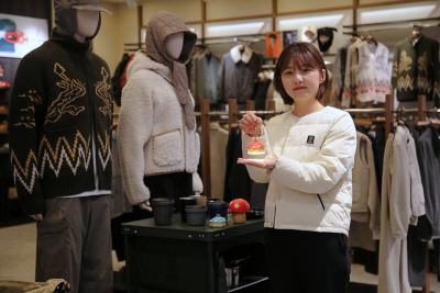 | 광주신세계 직원이 플레이스팟 ‘DOD(디오디)’ 매장에서 캠핑장에서 포인트가 되는 랜턴을 선보이고 있다. |