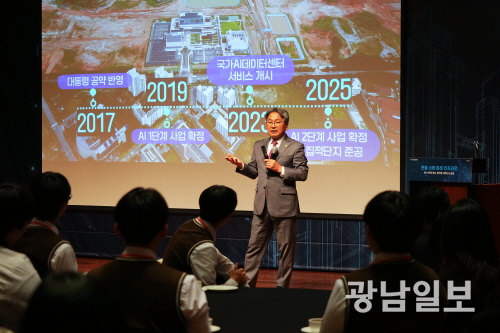 그는 이어 “국가AI데이터센터, AI영재고, 광주과학기술원(GIST), AI 이노스페이스 등이 위치한 첨단3지구 일원을 내년 1월 시행되는 AI 기본법에 따라 국가AI집적단지로 지정받아야 한다”며 “이 지역을 메가샌드박스형 실증도시로 만들어 세계 최초의 규제 없는 AI 도시를 구현하겠다”고 강조했다.