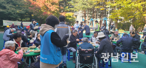 | 5일 광주 북구 두암주공아파트 2단지 일원에서 ‘2025년 참! 좋은 사랑의 밥차’가 운영됐다. |