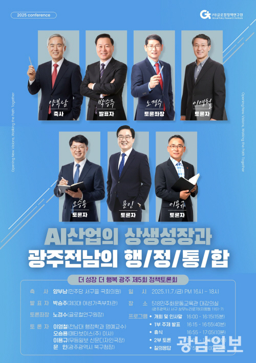 이어 토론에는 이영철 전남대 행정학과 명예교수, 오승용 메타보이스(주) 이사, 문인 광주 북구청장 등이 참여한다.