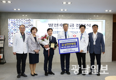 | 최민선 선한병원 정형외과 원장은 최근 전남대병원에 공공의료 강화와 병원 발전을 위한 발전후원금 3000만원을 쾌척했다. |