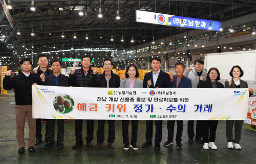 ‘해금’은 전남농업기술원이 2017년 육성한 골드키위 품종으로, 현재 약 80㏊ 규모에서 재배되고 있다. 그동안 주로 직거래 중심으로 판매돼 소비자 인지도 확산에 한계가 있었으나, 이번 도매시장 시범 판매를 통해 다양한 유통망 확보와 신규 판로 개척의 기반이 마련됐다.