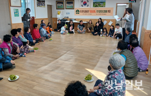 | 영암살래 입주자 간담회에 마을 주민과 도시 입주자들이 모여 의견을 나누고 있다. |