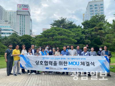 | 광주 동구 대인동 예술담길 번영회와 대구 물베기상권 상인회는 지난 2022년 7월 대인동에서 상호헙력을 위한 업무협약을 체결했다. |