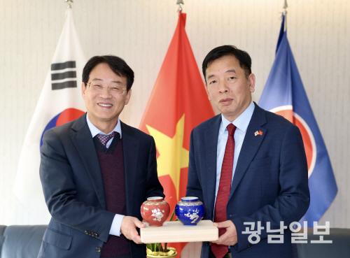 | 강진원 강진군수는 최근 부호 주한베트남 대사를 만나 교류협력에 대한 의지를 확인했다. |