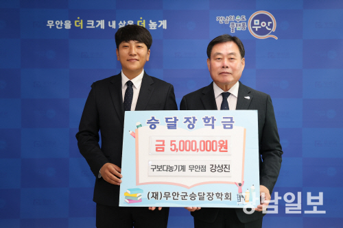 김산 무안군수는 “학생들을 위해 꾸준히 기탁을 해주신 강성진 대표께 감사드린다”며 “기탁 해주신 장학금은 학생들에게 소중히 전달하겠다”고 말했다.