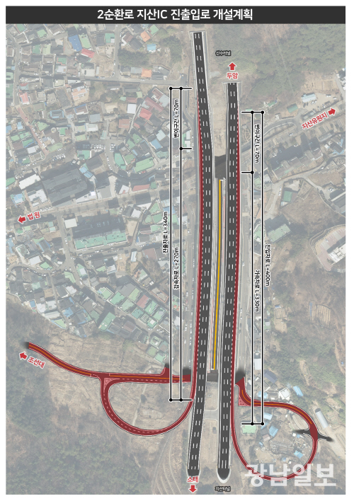 광주 제2순환도로 1구간 지산나들목(IC) 진출로 개설 사업에 제동이 걸렸다.