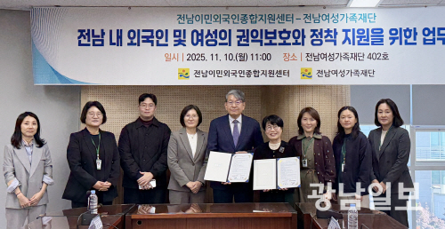 성혜란 전남여성가족재단 원장은 “외국인과 여성이 지역사회에서 차별 없이 존중받고 성장할 수 있도록 협력 체계를 탄탄히 구축하겠다”며 “이번 협약이 성평등은 물론 포용적인 전남을 만드는 출발점이 되길 기대한다”고 말했다.