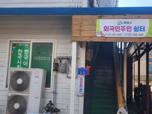 외국인주민쉼터는 일시적 거주지나 보호시설이 없어 어려움을 겪는 외국인주민을 돕기 위해 영암군이 삼호읍 삼호시온교회에 마련한 공간으로, 긴급동행서비스도 함께 병행하고 있다.