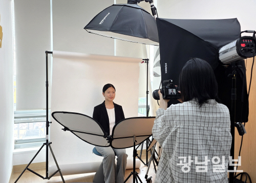 | 광주시가 운영하는 ‘광주청년센터 토닥토닥 상무점’이 실질적인 청년 구직 지원 공간으로 자리매김하고 있다. 사진은 이력서·프로필 사진 촬영 모습. |