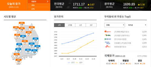 13일 한국석유공사 유가정보사이트 오피넷에 따르면 이날 광주 주유소의 휘발유 평균 판매 가격은 전일 대비 5.30원 오른 ℓ당 오른 1699.89원이다.