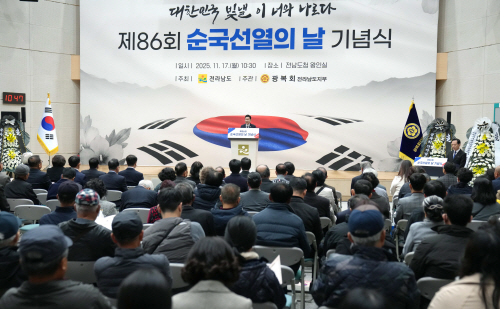 | 17일 전남도청 왕인실에서 ‘제86주년 순국선열의 날’ 기념식이 열린 가운데 강위원 전남도 경제부지사가 기념사를 하고 있다. |