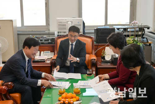 | 정기명 여수시장이 지난 14일 한병도 국회예산결산특별위위원회 위원장을 만나 내년도 국비 증액이 필요한 주요 사업을 설명하고 국회 심의 단계에서 예산이 증액·반영될 수 있도록 협조를 요청했다. |