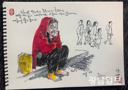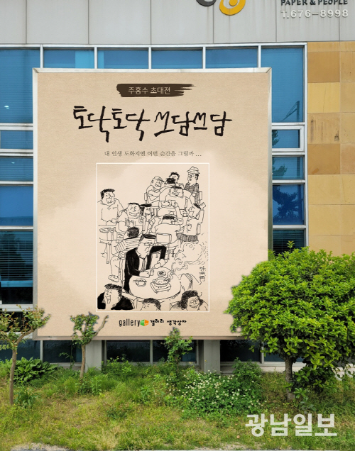 ‘어떻게 해서 전시를 유치하게 됐냐’는 질문에 대해 주홍 대표(갤러리 생각상자)는 이같이 답했다. 특별한 인연의 주인공은 전남 목포 출생 애니메이션 감독 주홍수씨가 그다. 주 감독은 18일부터 12월 19일까지 ‘토닥토닥 쓰담쓰담’이라는 타이틀로 개인초대전을 갖는다. 이번 전시는 주 감독의 광주에서의 첫번째로 마련된 자리다. ‘토닥토닥 쓰담쓰담’은 주 감독이 2021년 아마존의나비에서 출간한 단행본의 책 이름에서 차용했다. ‘토닥토닥 쓰담쓰담’은 스치듯 지나친 우리 삶을 기록한 그림 에세이집으로 이해하면 된다. 출품작은 삶의 스토리가 투영된 원화 150여점.