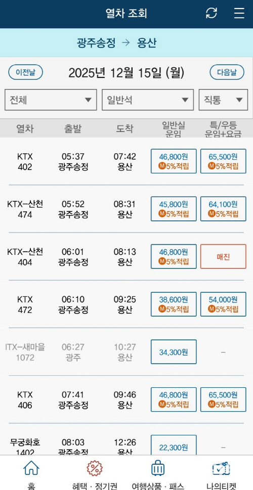 수요가 몰리는 주말에는 상황이 더 심각하다. 토요일 아침 상행과 일요일 오후 하행은 대부분 매진됐고, 증편된 하행선(용산 21:09→광주송정 23:44)도 도착이 자정에 가까워 ‘비수요 시간대 증편’이라는 비판을 받고 있다.