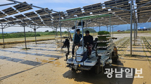 | 영암군 영농형 태양광 실증 논 벼이양작업 |
